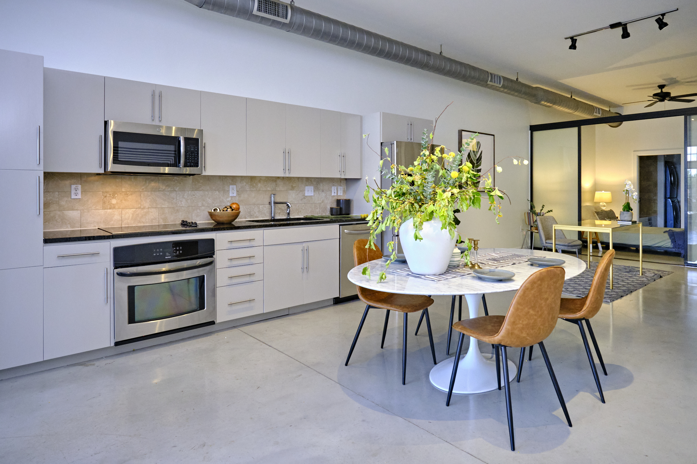 Stellar opportunity to lease this sleek and sexy industrial modern flat in the RED HOT area of East Austin. Este condos is located just one mile east of DT Austin with UNREAL walkability to all the hottest spots on the East side. High ceilings, exposed ductwork, concrete floors, granite countertops, flexible/open floor plan, creative reading nook, and a private balcony are just a few of the standout features. The building has secured access with a gated garage (premium full-sized reserved parking spot conveys with purchase) Amenities include a backyard community grill, picnic style tables, and a fenced-in dog park. Nearby bars, restaurants and breweries include Il Brutto, Licha's Cantina, Liberty, Whisler's , Zilker brewery, and Lazarus brewery, just to name a few. One mile to Lady Bird Lake Hike and Bike trail.