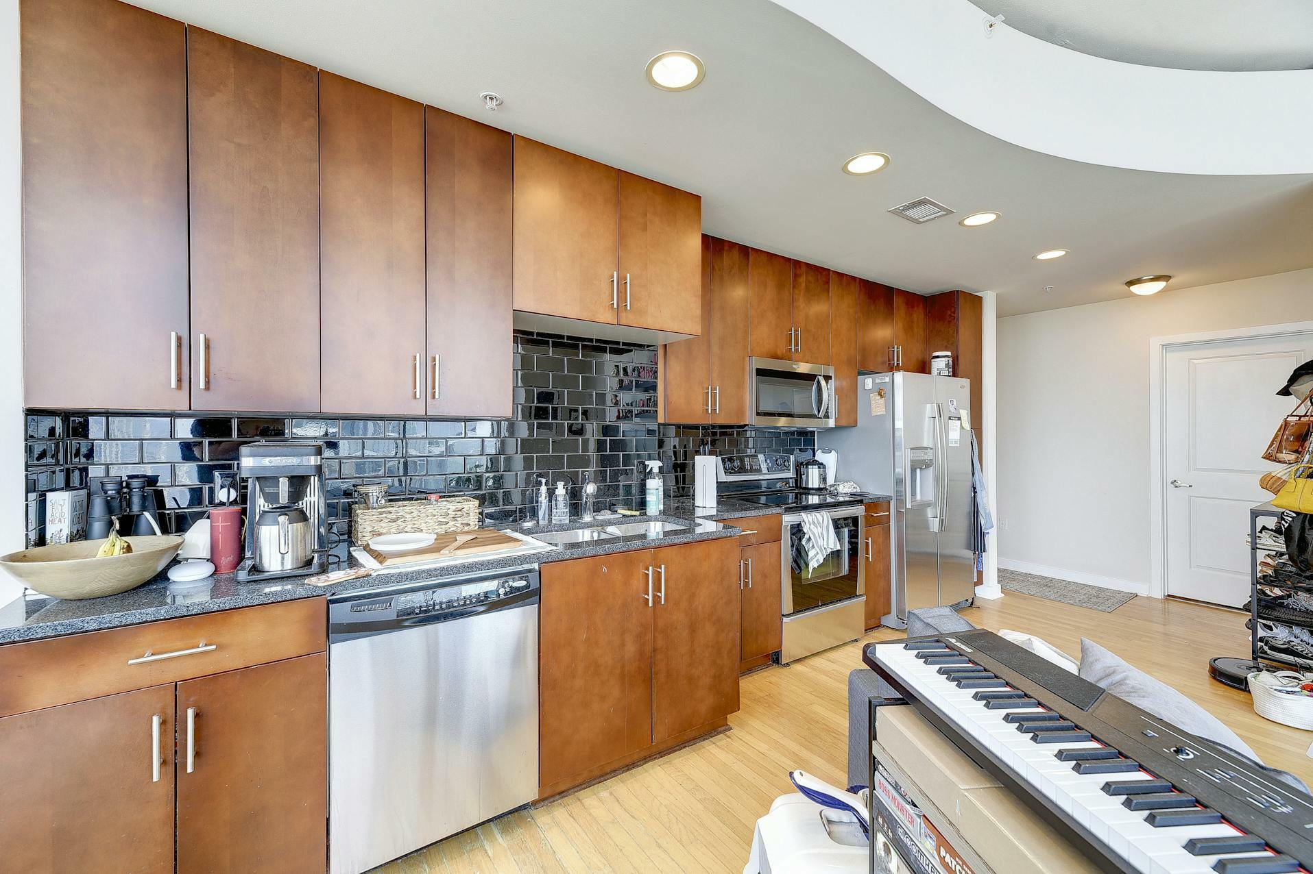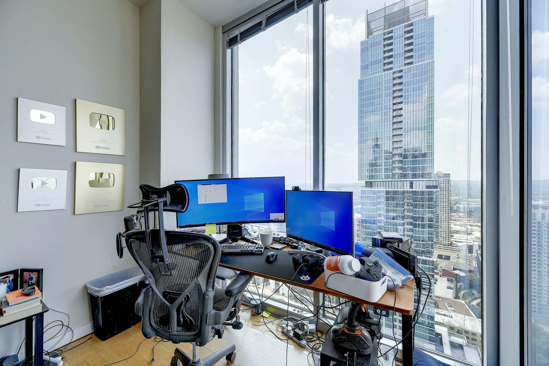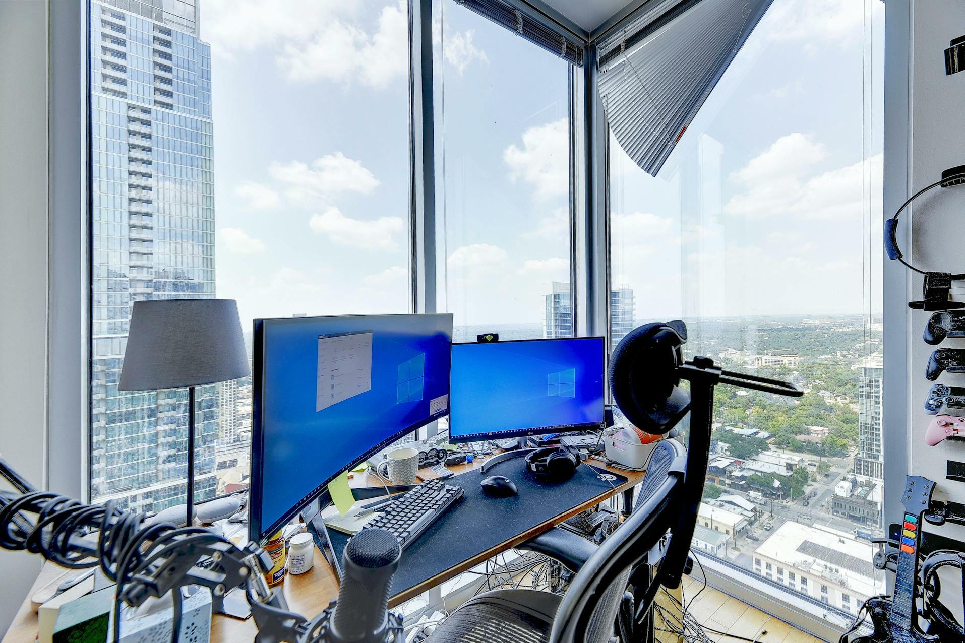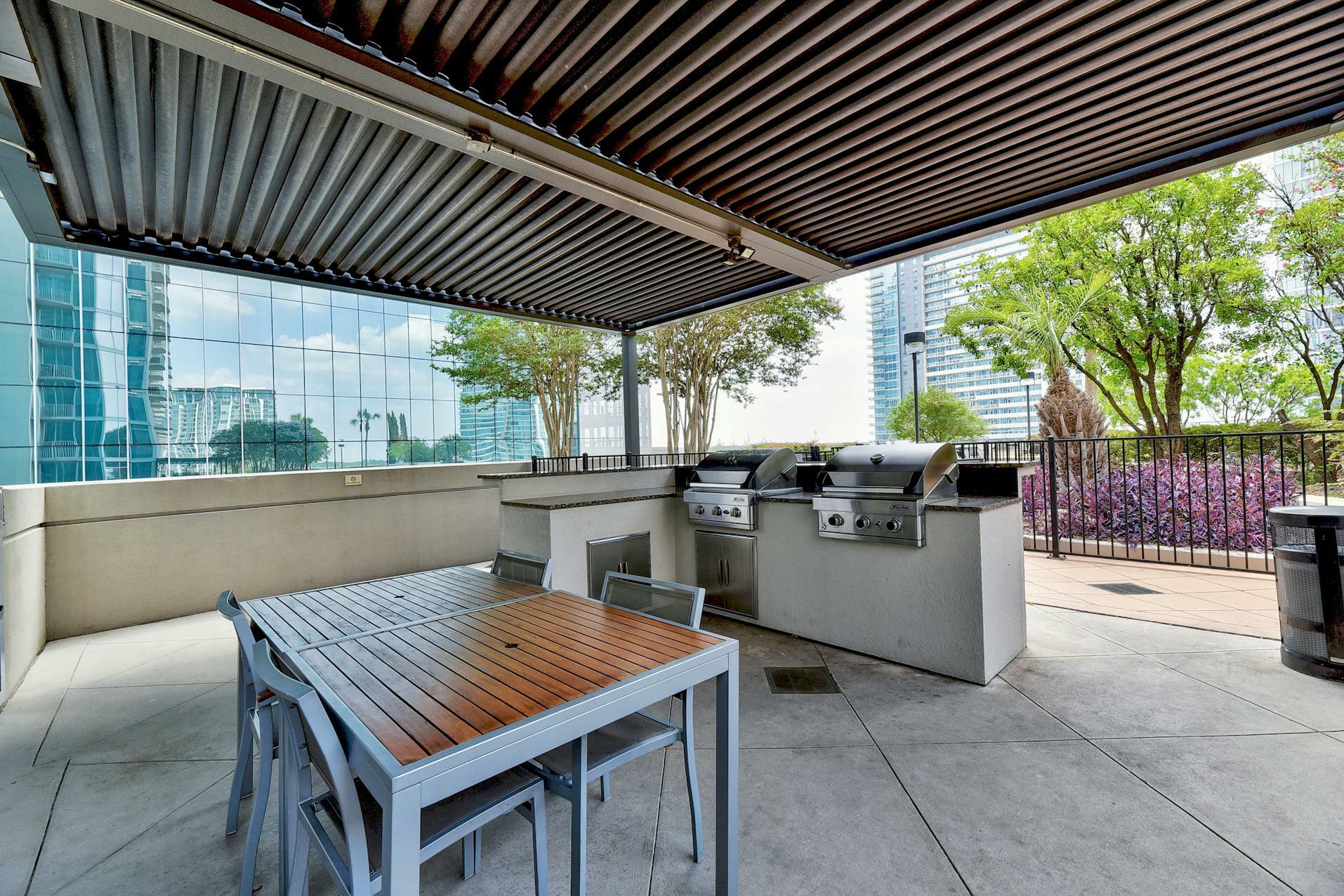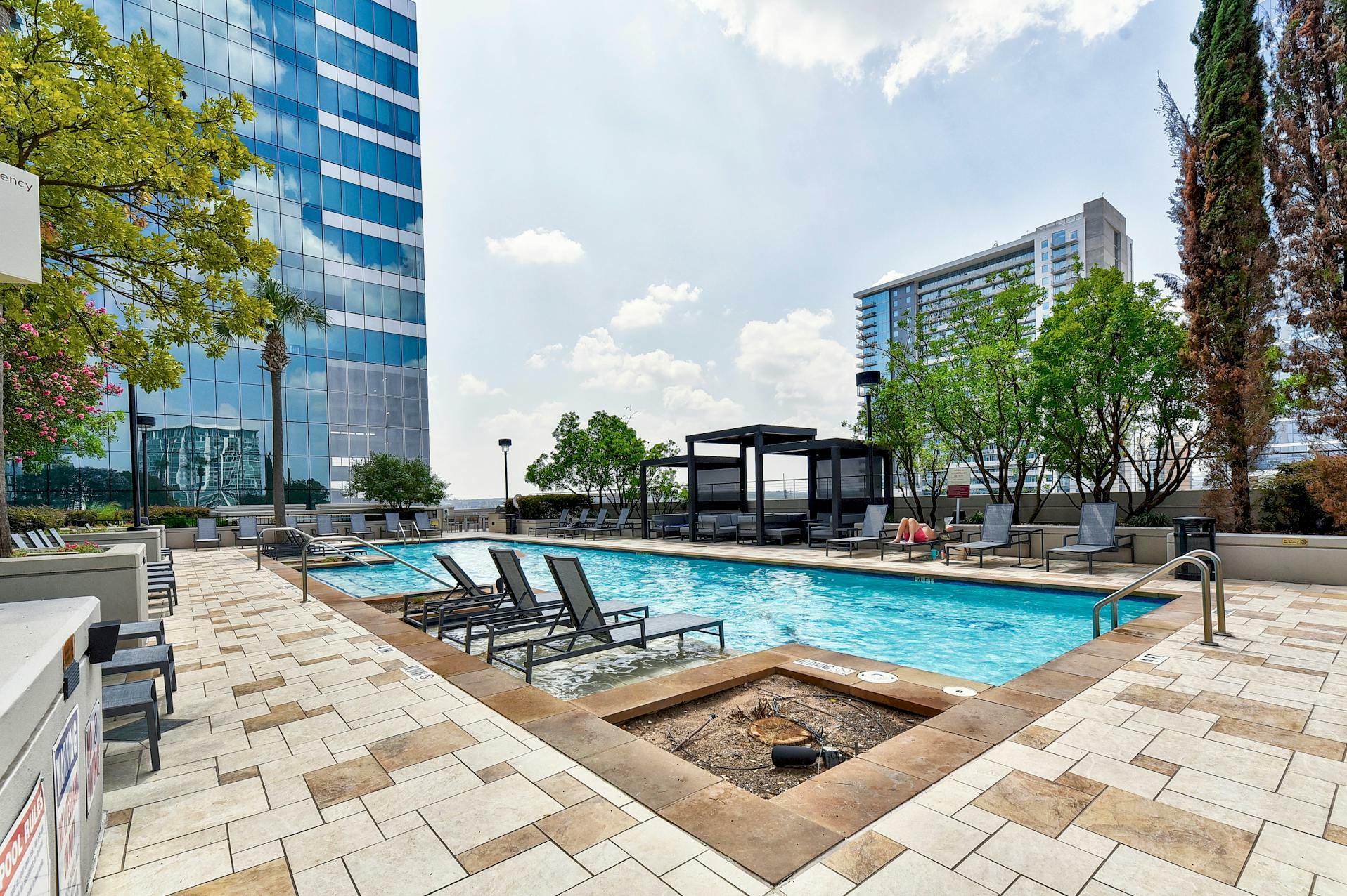 Enjoy breathtaking views of the downtown Austin skyline, Lady Bird Lake, and the hill country from this SE corner unit featuring floor-to-ceiling windows. This beautiful and true one-bedroom residence includes a private balcony and one reserved secure garage parking space. The open floor plan boasts a spacious layout with the kitchen seamlessly flowing into the living and dining areas, showcasing hardwood and tile floors (no carpet), custom lighting, solar shades, granite countertops, subway tile backsplash, stainless steel appliances, and AT&;T fiber is included. Situated in the heart of downtown, 360 High-rise Condominiums offer easy access to Lady Bird Lake, the Ann &; Roy Butler Hike &; Bike Trail, Whole Foods/Trader Joe's, and various dining and entertainment options. Residents can indulge in resort-style amenities such as a pool with cabanas, an outdoor fireplace, grilling stations, a deck with a lounge area, a dog park, 24-hour concierge services, a fitness center, a theater room, a club room with a billiard table, reserved covered garage parking, controlled building access, and street-level retail spaces.