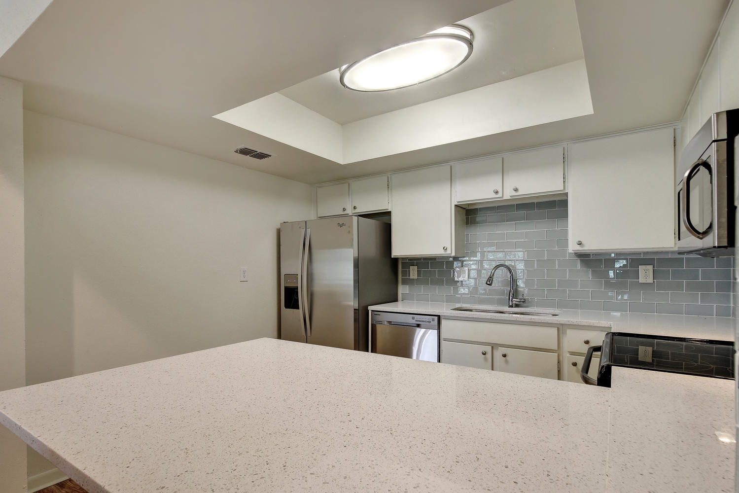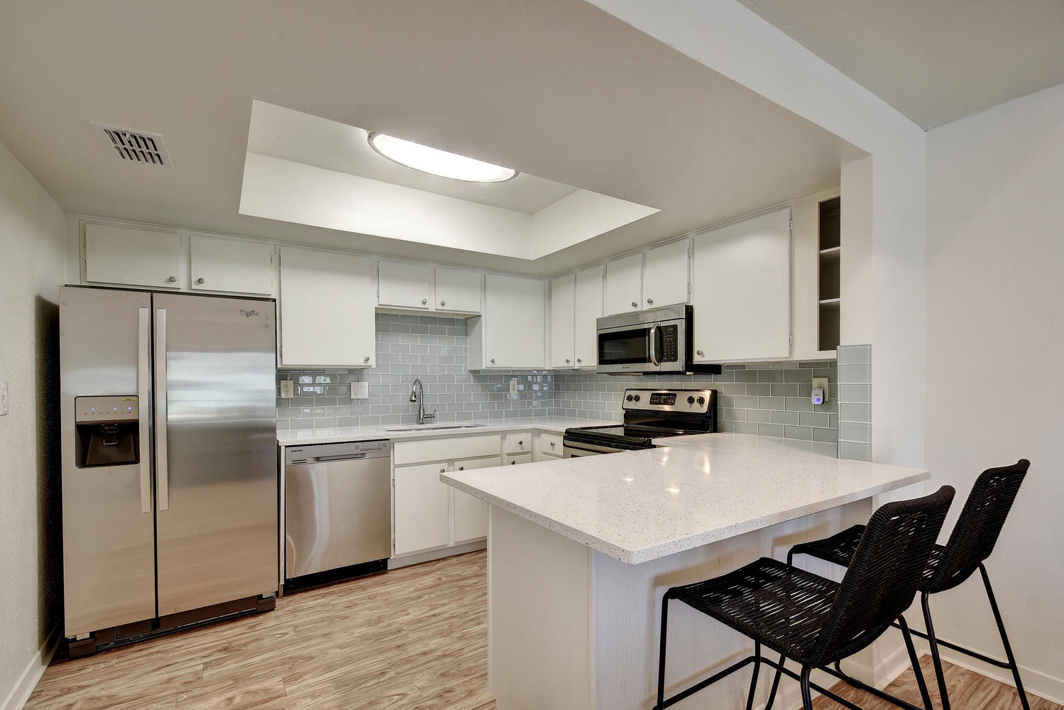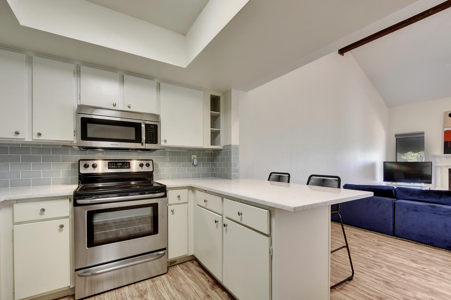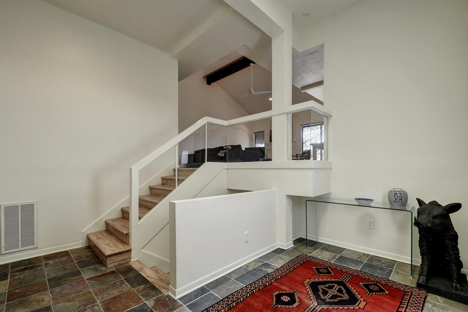 Beautifully remodeled & spacious 2 bed,2 bath condo. One of the few units backing to the greenbelt w/ 2 large decks offering full panoramic views of the hill country. High vaulted ceiling & large windows provide lots of light to the open floor plan. Full wood type & tile floors providing clean, contemporary feel. Large master, private deck off downstairs bedroom, walk-in closet & downstairs laundry room. Fabulous community featuring pool, sauna, club house & tennis courts. Minutes from downtown & in highly acclaimed Eanes ISD.