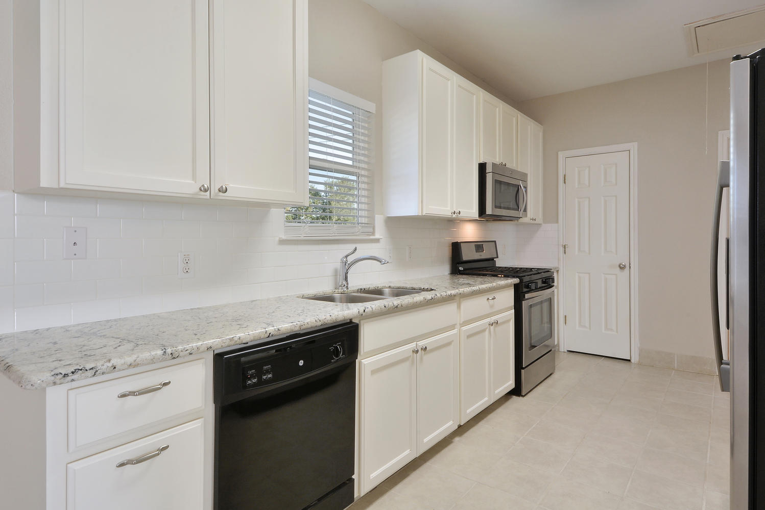 Unbeatable location just minutes from downtown Austin. This absolutely charming 2 bedroom/ 1 bath condo with covered parking lives just like a single family home with no shared walls! Recently updated granite countertops, updated kitchen with newer appliances, new ceramic wood grain tile floors, spacious bedrooms, open floor plan, 1 covered parking spot, great community yard. Near metro bus route, ACC Riverside Campus and South Shore Developments.